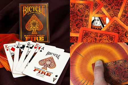 Les cartes à jouer Bicycle Fire sont un jeu avec des nuances de rouge, orange et noir. Le premier de notre série d’éléments, Bicycle Fire, est une nouvelle interprétation du dos très collection Hobgoblin imprimé sur le célèbre jeu Vanity Fair produit par The United States Playing Card Company en 1895.