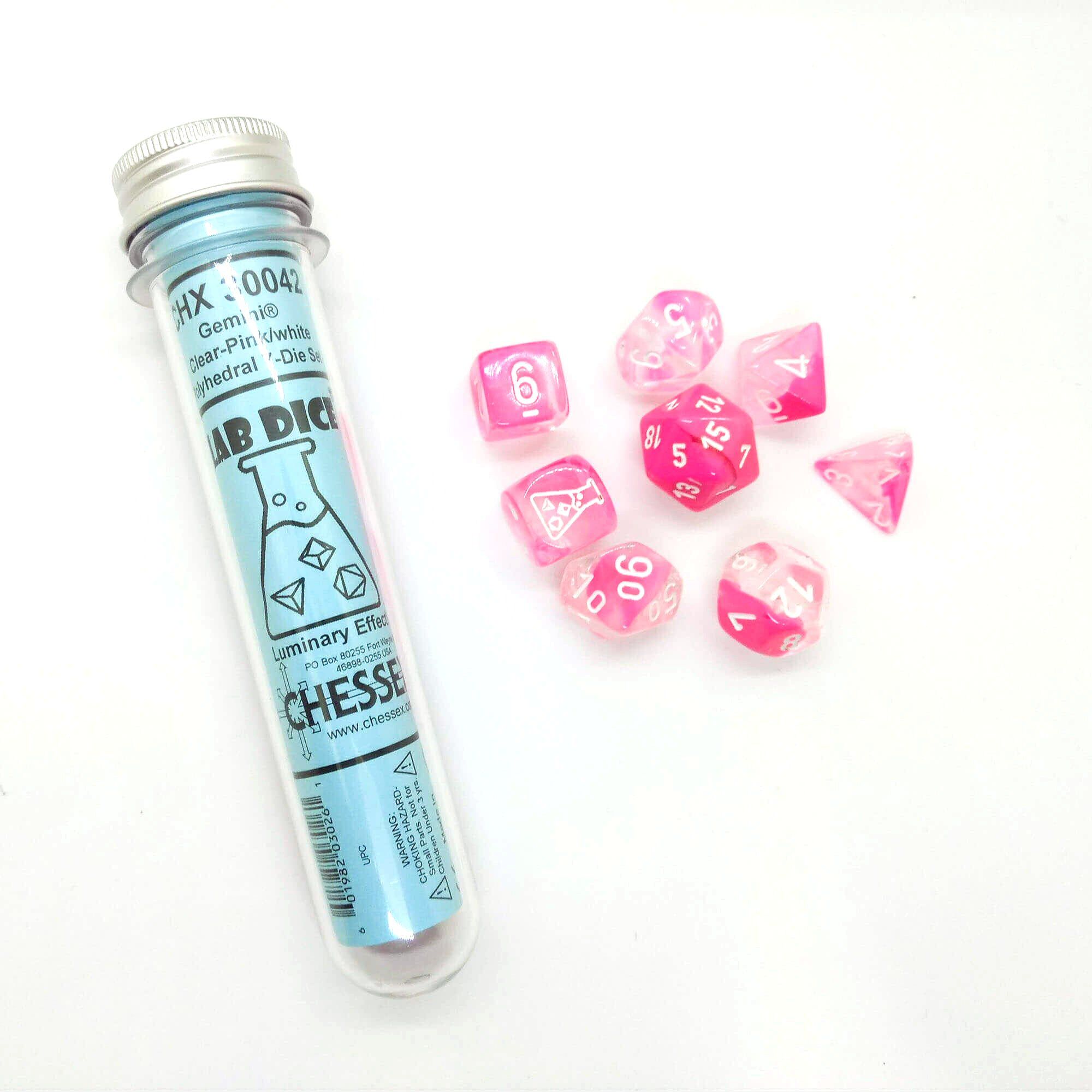 Dés en boite Lab Gemini Clear-Pink w/white