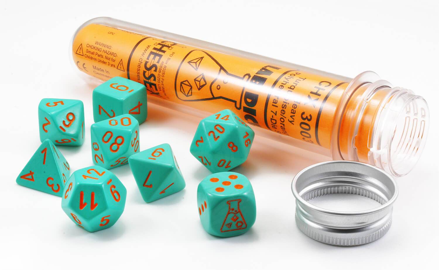 Dés en boite Lab Heavy Turquoise w/orange