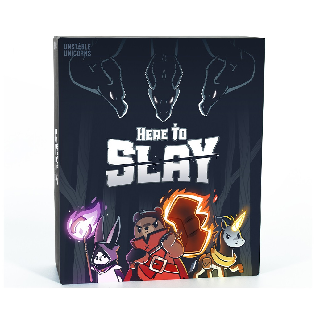 Here to Slay est un jeu de cartes de stratégie et compétitif qui consiste à rassembler un groupe de héros et à tuer des monstres (et parfois à saboter vos ami.e.s aussi).