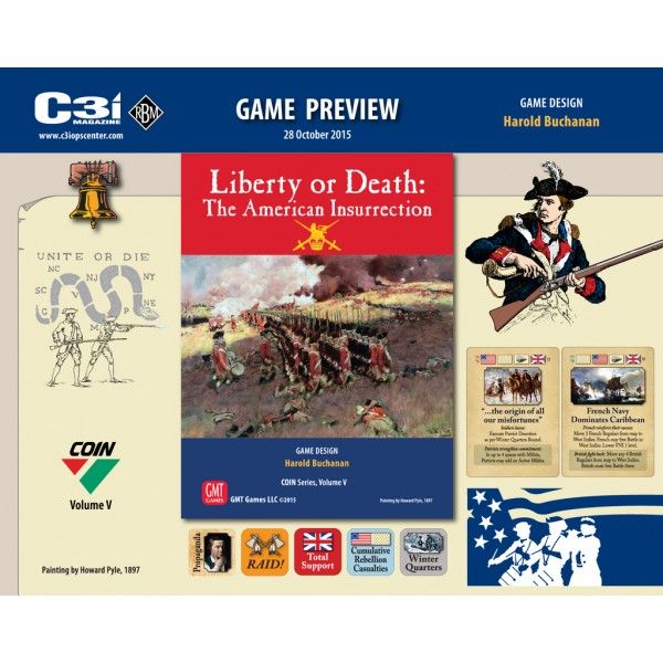 Volume V in GMT’s COIN Series takes us back to the struggle of the American Patriots against their parent British government. A unique multi-faction treatment of the American Revolution, Liberty or Death: The American Insurrection will take 1 to 4 players between lines of clashing red and blue infantry, Indian raids, European politics, British control of the seas, French intervention, and the propaganda war.
