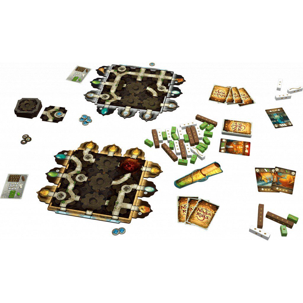 Chaque joueur parcourt son temple, pourvu d’emplacements pour des dalles et de caches prévu pour 9 reliques sacrées et maudites. Ces reliques sont placées au hasard, face cachée, autour des temples et rapportent des points de victoire si elles sont retournées face visible.