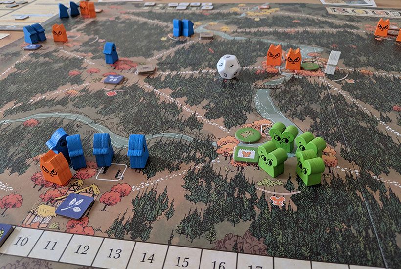 The Cats play a game of engine building and logistics while attempting to police the vast wilderness. By collecting Wood they are able to produce workshops, lumber mills, and barracks. They win by building new buildings and crafts.